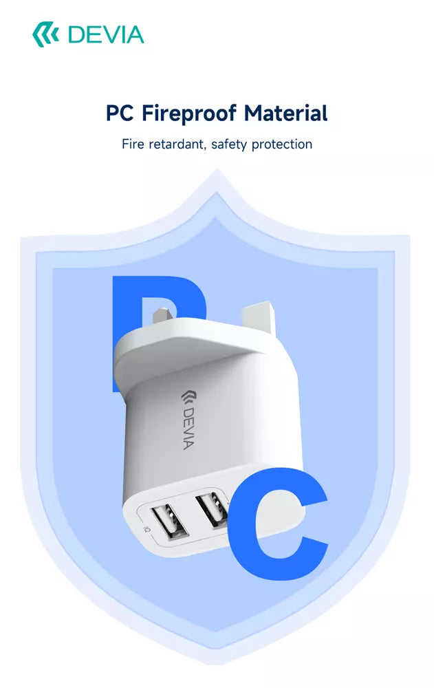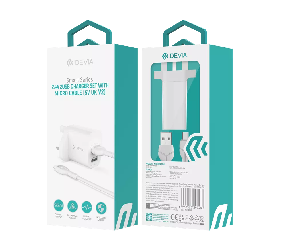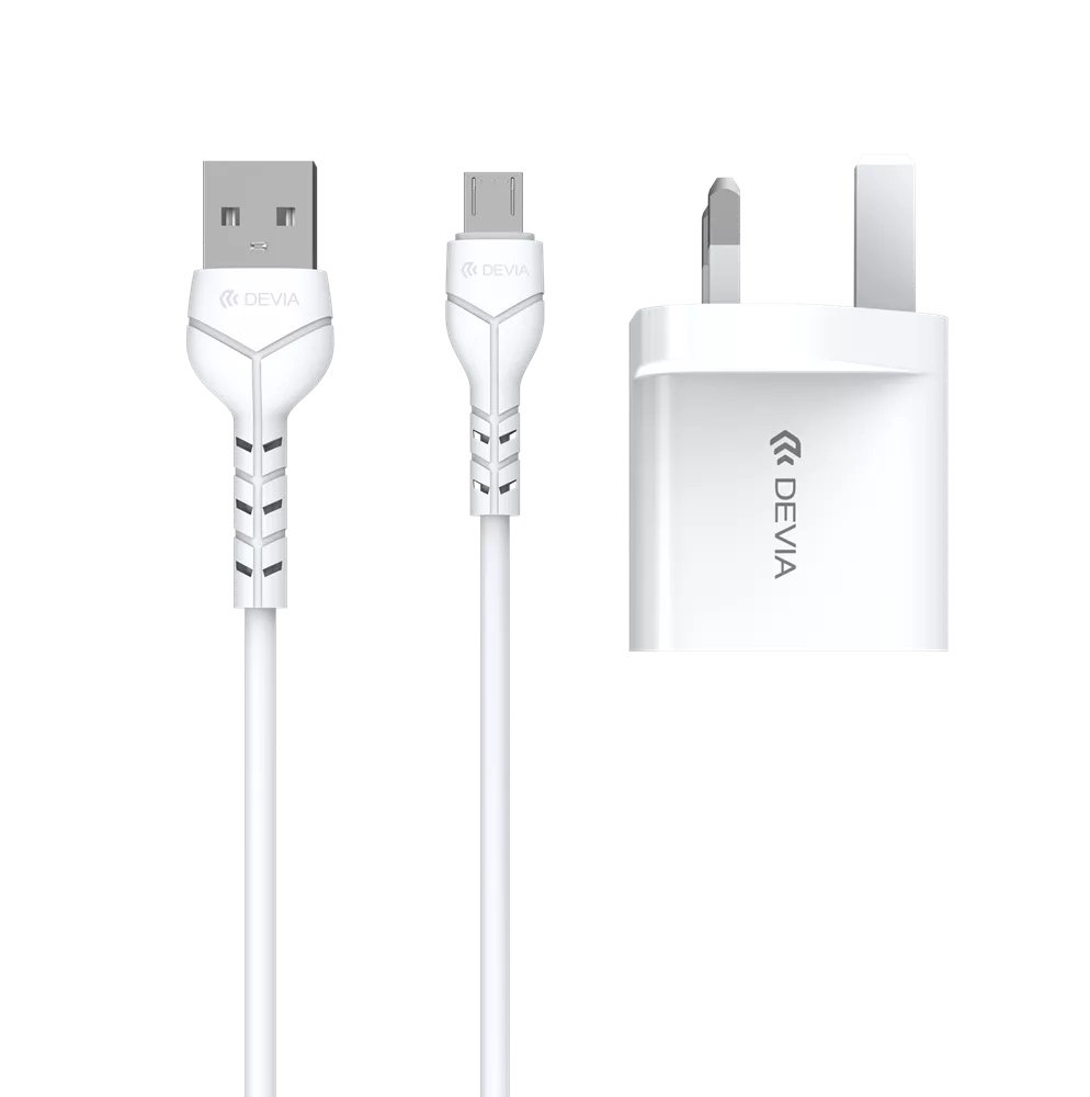 Devia - 2.4A Dual USB Plug & 1m MicroUSB Cable - White